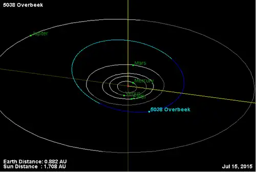 (5038) Овербек (лат. Overbeek) — астероид, относящийся к группе астероидов, пересекающих орбиту Марса и принадлежащий к светлому спектральному классу S. Он был открыт 31 мая 1948 года южноафриканским астрономом Эрнестом Джонсоном в обсерватории Йоханнесбурга, Южная Африка и назван в честь южноафриканского астронома Михеля Даниэля Овербека (африк. Michiel Daniel Overbeek)[2], одного из наиболее продуктивных наблюдателей переменных звезд.