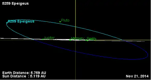 - Орбита астероида Эпегей и его положение в Солнечной системе