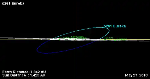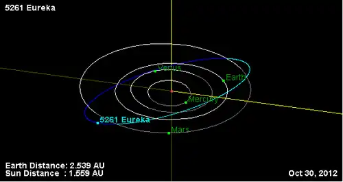 (5261) Эврика (лат. Eureka) — небольшой троянский астероид Марса, расположенный в марсианской точке Лагранжа L5, движущийся по орбите в 60° позади планеты. Колебания расстояния достигают 0,3 а. е., при чём сам диапазон колебаний периодически смещается, например, в 1850 году диапазон колебаний лежал в промежутке от 1,5 а. е. до 1,8 а. е., в 2400 году он будет лежать в промежутке от 1,3 а. е. до 1,6 а. е. Он стал первым обнаруженным троянским астероидом Марса[2].