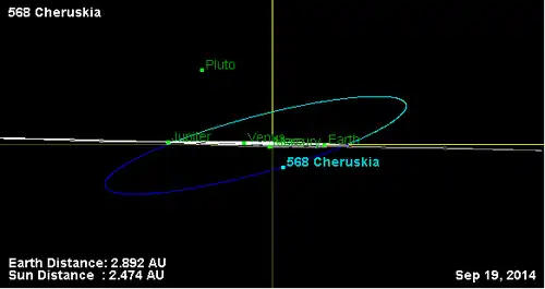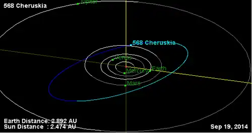 - Орбита астероида Херуския и его положение в Солнечной системе