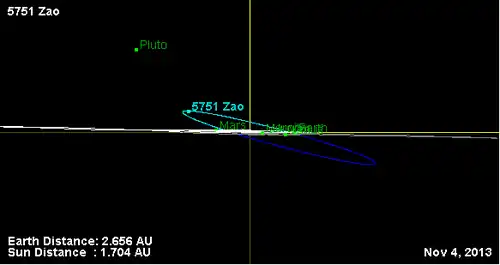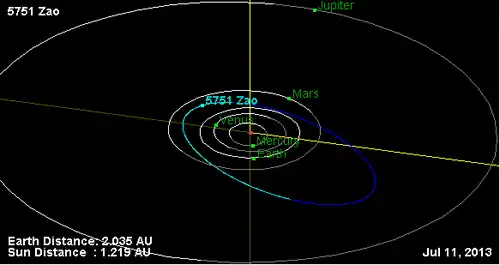 - Орбита астероида Дзао и его положение в Солнечной системе
