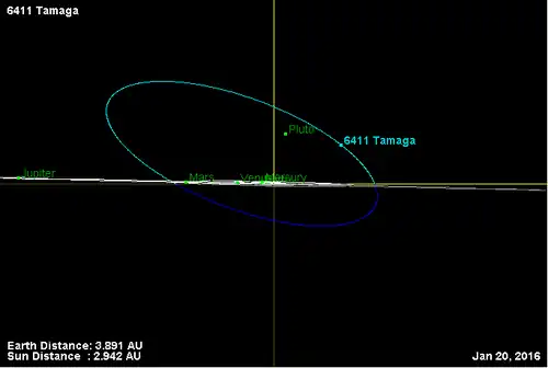 - Орбита астероида Тамага и его положение в Солнечной системе
