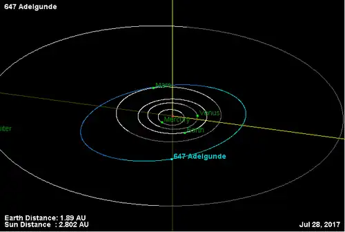 - 1 2 3 4 LCDB Data for (647) Adelgunde. Asteroid Lightcurve Database (LCDB). Дата обращения: 11 августа 2016. Архивировано 4 марта 2016 года.