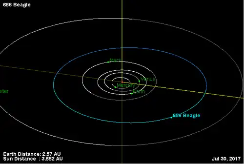 (656) Бигль (лат. Beagle) — астероид главного пояса, который относится к спектральному классу Ch и входит в состав семейства Фемиды. Он был открыт 22 января 1908 года немецким астрономом Августом Копффом в Гейдельбергской обсерватории и назван в честь корабля «Бигль», на котором совершил своё путешествие Чарльз Дарвин[3].