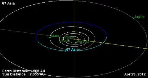 (67) Асия (лат. Asia) — астероид главного пояса, который принадлежит к светлому спектральному классу S. Он был открыт 17 апреля 1861 года английским астрономом Норманом Погсоном в Мадрасской обсерватории и назван в честь древнегреческой океаниды Асии, дочери Океана и Тефиды[1]. Название также связано с частью света Азией, поскольку это первый астероид открытый с территории Азии.