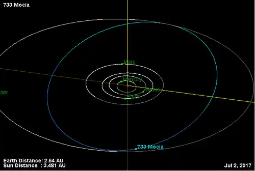 (733) Моция (лат. Mocia) — астероид главного пояса, который относится к спектральному классу C. Он был открыт 16 сентября 1912 года немецким астрономом Максом Вольфом в Гейдельбергской обсерватории и назван в честь его сына Мока[1].