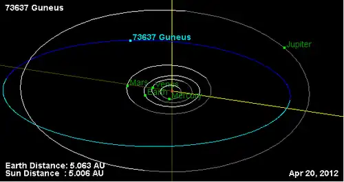 - Орбита астероида Гуней и его положение в Солнечной системе