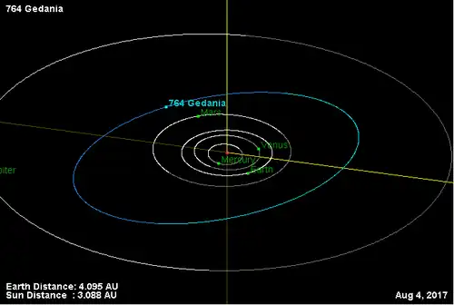 (764) Гедания (лат. Gedania) — астероид главного пояса, который принадлежит спектральному классу C. Он был открыт 26 сентября 1913 года немецким астрономом Францем Кайзером в Гейдельбергской обсерватории и назван в честь польского города Гданьск[1].