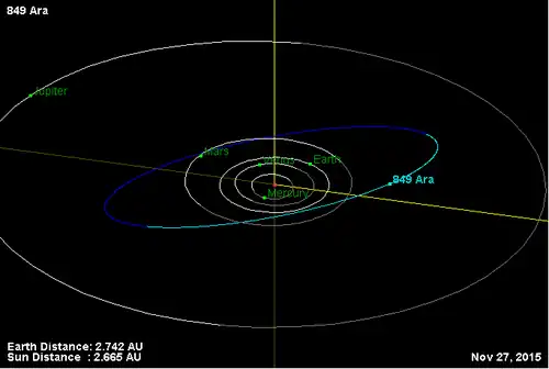 (849) Ара (англ. ARA) — небольшой астероид главного пояса, который принадлежит к металлическому спектральному классу M. Он был открыт 9 февраля 1912 года российским астрономом Сергеем Ивановичем Белявским в Симеизской обсерватории и назван в честь Американской администрации помощи (American Relief Administration), которая оказала значительную помощь во время голода 1922 года в Поволжье[1].