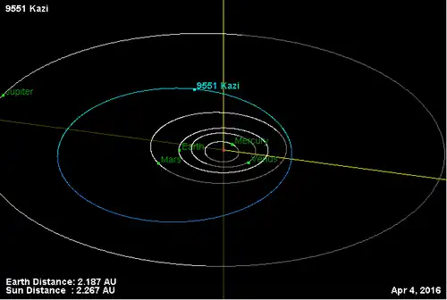 (9551) Кази (лат. Kazi) — астероид, относящийся к группе астероидов, пересекающих орбиту Марса. Он был открыт 20 октября 1985 года чешским астрономом Антонином Мркосом в обсерватории Клеть и назван в честь легендарной чешской княжны[2].