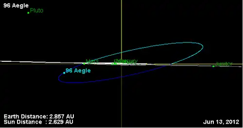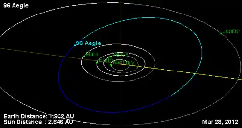- Орбита астероида Эгла и его положение в Солнечной системе