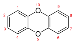 Слово «диоксин» можно отнести к соединениям, у которых в ядре скелетной структуры присутствует диоксин с заместителем молекулярной группы. Например, структура соединения дибензо-1,4-диоксина состоит из двух бензогрупп, сплавленных с кольцами 1,4-диоксина.