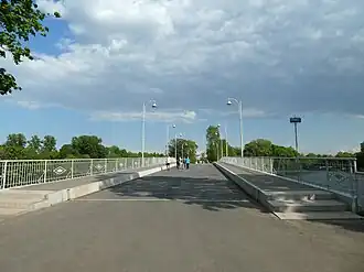 Пролётное строение разводного пролёта металлическое, сварное однокрылое, раскрывающейся системы с неподвижной осью вращения и жестко прикреплённым противовесом. В поперечном сечении крыло состоит из 2-х главных балок. Размер разводного пролёта — 16,12 м. Угол раскрытия крыла 76°[18]. Разводка производится с помощью электромеханического привода. Мост разводят не по графику, а по предварительным заявкам для пропуска маломерных судов[3].