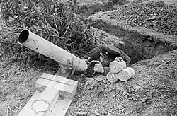 Тест трофейного ампуломёта финской химической частью. Ноябрь 1942 года. Станок заменён подручными предметами