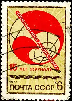 Почтовая марка 15 лет журналу Проблемы мира и социализма - Визит в Татарскую АССР министра обороны СССР Гречко А. А. для встречи с партийно-хозяйственным активом Татарии и посещение предприятий региона, а также для вручения республике на торжественном заседание ордена Дружбы народов согласно Указу Президиума Верховного Совета СССР от 29 декабря 1972 г. № 3767-VIII[9].