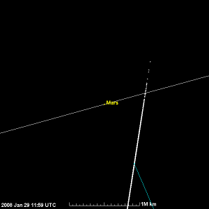 ![]() Пролёт астероида 2007 WD5 около Марса | |