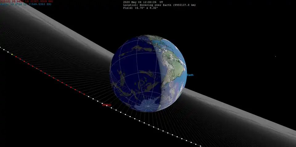 4 мая 2020 года астероид прошёл на расстоянии 7000 км над поверхностью Земли (13403 км от центра Земли[5]). По оценкам его диаметр составляет от 2,7 до 6 метров[4].