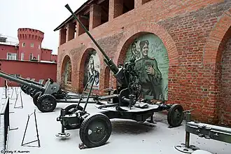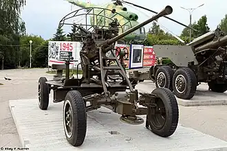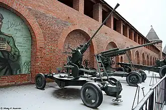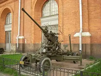 ![]() 37-мм автоматическая зенитная пушка обр. 1939 года в Военно-историческом музее артиллерии, инженерных войск и войск связи в Санкт-Петербурге | |