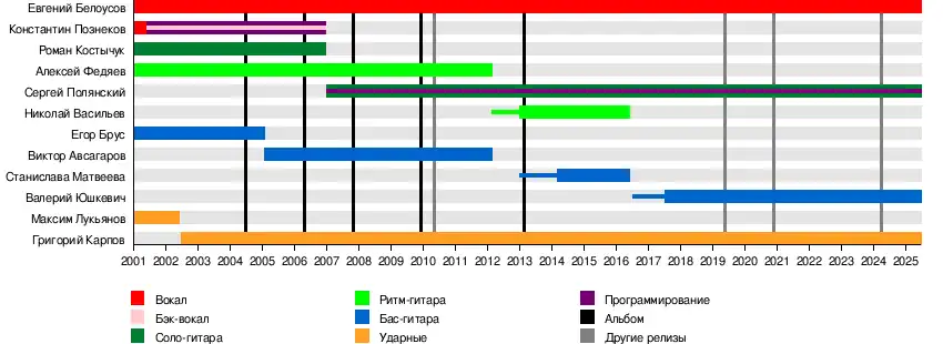 - Евгений «Женк» Белоусов — вокал (2001 — настоящее время), перкуссия (2001)