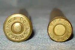 | Два варианта патронов .236/6 mm U.S. Navy: ранний фланцевый и бесфланцевый (гражданский вариант) с обоймой. | |