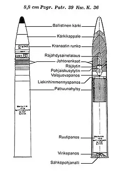 Характерным для германских боеприпасов бронебойного действия являлось использование унифицированных в различных калибрах снарядов, снаряжаемых, помимо указанного, в гильзы различной длины. Наиболее распространенным типом бронебойных снарядов являлся снаряд с индексом Pzgr. 39, имевший несколько модификаций, отличавшихся незначительными изменениями. Например, модификация 8,8-cm PzGr. 39-1 отличалась использованием более качественной стали. Модификация PzGr. 39/43 в том же калибре отличалась более широкими (относительно PzGr. 39-1) ведущими поясками: 17,8 мм вместо 12,3 мм, для предотвращения срыва с нарезов канала ствола при действии высоких давлений. Материал поясков - спечённое железо.
