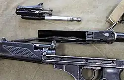 | Прицел | открытый, рассчитанный на дальности 100 и 200 м, на модернизированный вариант возможна установка оптического (ПСО-1-1), коллиматорного (ПК-01) или ночного (НСПУ-3) прицелов, а также лазерного целеуказателя (ЦЛ-03) |