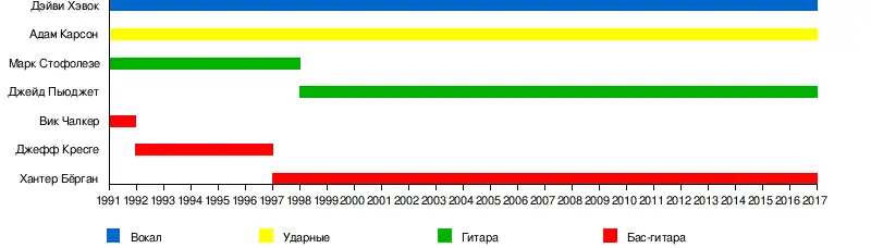 Слева направо: Дэйви Хэвок, Хантер Бёрган, Адам Карсон, Джейд Пьюджет.