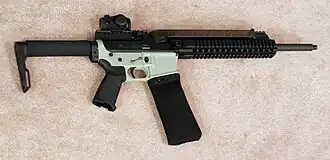 - ↑ Sneak peek of suppressed full auto AR57 -The Firearm Blog. Дата обращения: 9 февраля 2017. Архивировано 4 ноября 2016 года.