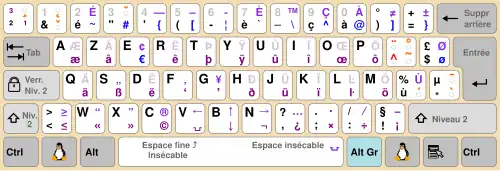 Раскладка AZERTY для французского языка в Microsoft Windows и раскладка AZERTY, используемая в GNU/Linux, не соответствуют стандартам французского языка: