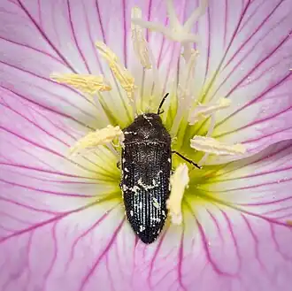 - ↑ Westcott, R. L., W. F. Barr, G. H. Nelson, & D. S. Verity. 1979. Distributional and biological notes on North and Central American species of Acmaeodera (Coleoptera: Buprestidae). The Coleopterists Bulletin 33(2):169-181.