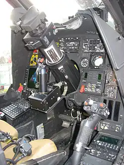 Бронирование уязвимых агрегатов сведено к минимуму за счет применения избыточных элементов в системе управления, специальной компоновки критических по уязвимости агрегатов, протектированных (самозатягивающихся) топливных (заполнены сетчатым пенополиуретаном) и масляных баков и трубопроводов[8]. Броня используется в кабине для защиты экипажа. Бронируется пол кабины, по некоторым данным, в кабине установлены ударостойкие кресла Martin Baker со сдвижными боковыми бронепанелями из композитной брони, рассчитанные на одиночное поражение 12,7-мм пулей при обстреле из нижней полусферы[9]. Переднее плоское лобовое пулестойкое стекло[10].