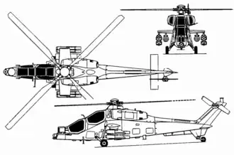 | Силовая установка | 2 × ВК-2500-02 | 2 × ВК-2500 | 2 × General Electric T700-GE-701D | 2 × General Electric T700-GE-401C | 2 × LHTEC CTS800-4A | 2 × Rolls-Royce MTR390-E |
