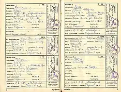 - ↑ Original: «deutsches oder artverwandtes Blut»; Reichsgesetzblatt 1939 I p. 2042, § 6.