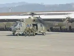 Дальность полета была увеличена, так как он вмещает 3560 литров топлива (в дополнение к 900-литровому сбрасываемому подвесному баку, который может быть добавлен к фюзеляжу вертолёта в задней части). Он оснащен двумя 7,62-мм пулеметами, по одному с каждого борта для непосредственной защиты вертолёта.