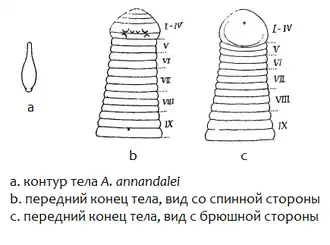 Нефридиев 16 пар, нефридиопоры трудноразличимы.