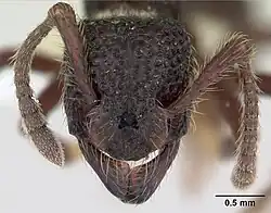 Голова субквадратная; затылочная доля обычно присутствует; лобный киль широко расширен латерально; ряд прочных волосков на основании передних лапок напротив стригиля присутствует; промезонотальный шов отсутствует или слабо вдавлен, никогда не прерывает скульптуру дорсальной мезосомы; дыхальце петиоля направлено прямо вентрально и погружено в ямку; второй брюшной (IV абдоминальный) стернит обычно сильно редуцирован, так что брюшко направлено вентрально и вперёд. Усики рабочих и самок 12-члениковые (у самцов 13). Жало развито[1][2].