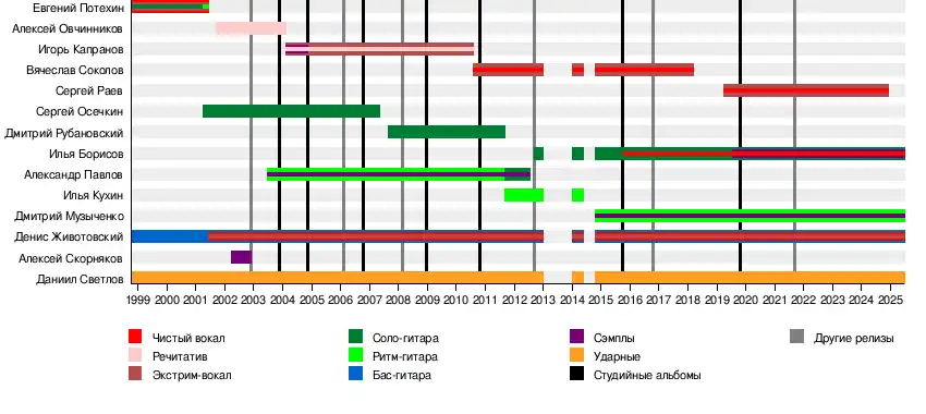Спустя несколько дней группа объявила о прямом эфире ВКонтакте[117] и выложила другое фото в обновлённом составе без маски. Новым вокалистом оказался Сергей Раев, участник Obscure of Acacia, Triumphant, Celestial Meridian, известный также по работе с Shokran и Sumatra[118].
