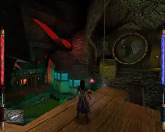 American McGee’s Alice (с англ. — «Али́са Аме́рикана Макги́», в локализации — «Америкэн Макги: Алиса») — компьютерная игра в жанре action от третьего лица, разработанная американской компанией Rogue Entertainment под руководством геймдизайнера Американа Макги и изданная Electronic Arts. Первый выпуск игры состоялся 5—6 декабря 2000 года[11][12]. Продукт разработан для персональных компьютеров под управлением операционных систем Microsoft Windows и Mac OS, а также для платформ PlayStation 3 и Xbox 360[12]. Игра использует движок id Tech 3 от id Software[13], ранее применённый в Quake III Arena и переработанный для использования в American McGee’s Alice компанией Ritual Entertainment[14].