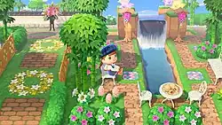 Такахаси также заметил, что упрощённый дизайн и пустые пространства были намеренно созданы для того, чтобы побудить игрока заполнить данную «пустоту» собственными идеями, позволить ему стать дизайнером своего острова, прибегая к специально созданным для этого инструментам[66]. Из-за ограниченных возможностей аппаратного обеспечения в ранних играх серии Animal Crossing трава была представлена плоской поверхностью с треугольными абстрактными узорами. Вид травы был оставлен в New Horizons, так как наилучшим образом вписывался в дизайн внутриигрового окружающего пространства. Разработчики долгое время пытались проработать более реалистичную и детализированную траву, но она вызывала «информационную перегрузку» и выглядела неэстетично. В итоге дизайн детализированной травы был реализован в сорняках, которые растут точечно и которые игрок может убирать[66].