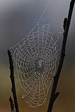 Паутина более чем на 50 % состоит из белка фиброина с молекулярным весом 200—300 кДа. Паутина производится для различных целей: для построения ловчих сетей и коконов для яиц, бегства в случае опасности и пр. Известно шесть типов желёз: