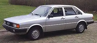 Эта модель дебютировала в Европе в 1973 году как Audi 80 и, в этом же году, в США как Audi Fox. Официальное представление автомобиля происходило на Женевском автосалоне в марте 1973 года. В этом же году автомобиль был назван "Европейским автомобилем года". Автомобиль был доступен в 2-х или 4-х дверном кузове типа седан. Автомобиль занял места на рынке взамен нескольких моделей, которые Audi сняла с производства (серия F103, которая включала первую модель, обозначенную как «Audi 80»). Кроме того, Audi, в лице этой модели, получила реального конкурента для Opel Ascona и Ford Taunus[4].
