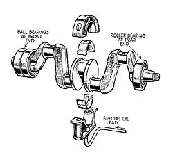 Шатунные шейки струйно смазывались маслом, поступавшим из картера через каналы, высверленные в коленвале. Изначально диаметр шейки вала составлял 28,575 мм. (1,125 дюйма), однако позже был увеличен до 33,3375 мм. (1,3125 дюйма).