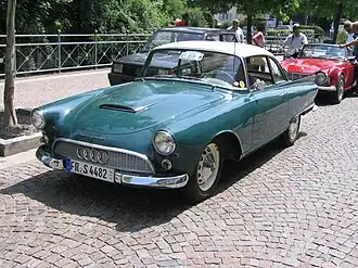 Auto Union 1000 Sp — в 1958 году фирма DKW предложила под маркой Auto Union этот спортивный автомобиль, оснащенный двухтактным 3-цилиндровым двигателем рабочим объемом 981 см³ и мощностью 55 л. с. С 1958 по 1965 год выпущено 1640 кабриолетов и 5000 купе. В 1959 году была построена серия в 50 единиц с двигателем V6[1]. Плавниковый стиль модели 1000 Sp вдохновлён дизайном Ford Thunderbird 1957 года — задние плавники и круглые задние фонари[2].