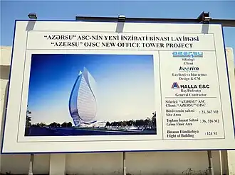 Для выбора проекта нового офисного здания АО «Азерсу» был проведен тендер среди архитектурных компаний. 9 августа 2012 года стало известно, что в тендере победила корейская компания Heerim Architects, предложившая проект здания в форме капли воды[5], тематически взаимосвязанный с близлежащим небоскребом (см. «Интересные факты»).