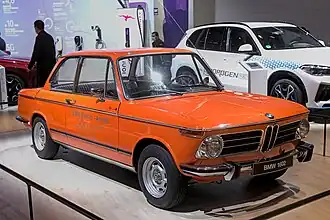 BMW 2002 впервые был представлен в 1971 году[7]. Это был первый автомобиль с двигателем с турбонаддувом[8]. Максимальная скорость автомобиля 211 км/ч.