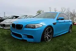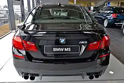 BMW M5 F10 — это шестое (после-BMW 3/15 DA-1, BMW 3/15 DA-2, BMW 3/15 DA-3 Wartburg, BMW 3/15 DA-4, BMW 3/20, BMW 600, BMW 700 2-door sedan, BMW Neue Klasse 1500 sedan, BMW Neue Klasse 1800 sedan, BMW Neue Klasse 1600 sedan, BMW Neue Klasse 2000 sedan, BMW E12 4-door sedan, BMW M5 (E28) 4-door sedan, BMW M5 (E39) 4-door sedan, и BMW M5 (E60) 4-door sedan) поколение BMW заряженной «пятой» серии, которое было представлено 5 июня 2011 года на Франкфуртском автосалоне.[22] Продажи автомобиля стартовали с ноября 2011, и на выбор покупателям доступен один тип двигателя в вариациях 560 и 575 л. с. с прежним крутящим моментом. Так же у автомобиля изменилась подвеска (втулки, пружины, амортизаторы, стабилизаторы поперечной устойчивости), уменьшив клиренс на 10 мм. Прямым конкурентом является Mercedes-Benz E63 AMG/S 2014 модельного года.[23]
