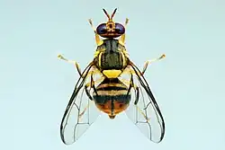 - ↑ Schutze MK, Aketarawong N, Amornsak W, Armstrong KF, Augustinos AA, Barr N, et al. (April 2015). Synonymization of key pest species within the B actrocera dorsalis species complex (D iptera: T ephritidae): taxonomic changes based on a review of 20 years of integrative morphological, molecular, cytogenetic, behavioural and chemoecological data. Systematic Entomology. 40 (2): 456–71. doi:10.1111/syen.12113.