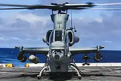 Bell AH-1Z Viper — ударный вертолет, созданный на основе более раннего Bell AH-1 SuperCobra. По сравнению со своим предшественником этот вертолёт оснащен новым четырехлопастным несущим винтом, получил модернизированную авионику, обновленные системы вооружения, прицельный комплекс и электрооптические датчики на интегрированной платформе вооружения. Среди других преимуществ, предоставляемых этими изменениями, он имеет повышенную боевую живучесть, может обнаруживать различные цели на больших расстояниях, а также атаковать их с использованием высокоточного оружия[11]. Планер AH-1Z был значительно переработан для максимального повышения ударопрочности. Эти меры включают энергопоглощающее шасси, системы инертизации паров отработанного топлива, самогерметизирующиеся топливные баки, а также энергопоглощающие ударостойкие сиденья. Активные системы бортовой защиты включают в себя блоки отстрела тепловых ловушек, средства предупреждения о ракетной атаки и радиолокационном облучении, а также систему подавления инфракрасного излучения на зависании (Hover Infrared Suppression System — HIRSS) для снижения заметности выхлопов двигателей[11].