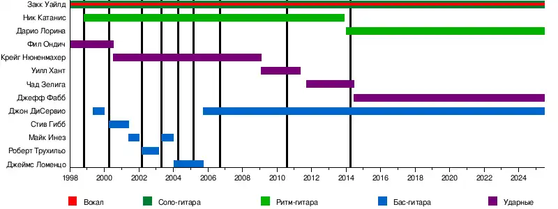 - Закк Уайлд — вокал, соло-гитара, клавишные (1998—наши дни)