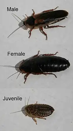 ![]() Самка Blaptica dubia рядом с линейкой | ||||||||||||||